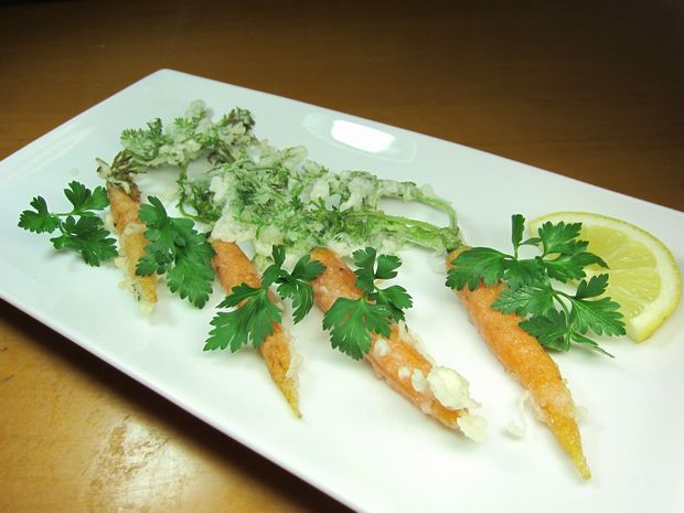 ジュージューしついでにチビニンジンを天麩羅にしてみましたぁ〜