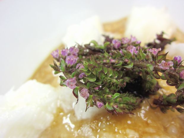 0 クラッシュした長いもと穂紫蘇をトッピング〜