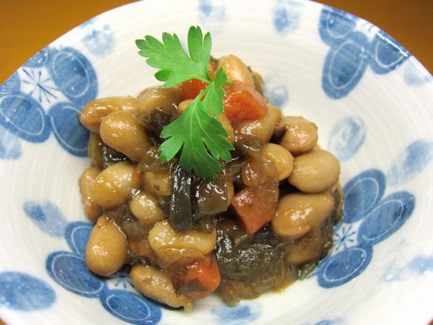 創作スイートカボチャのゴーヤ和え〜と、備長炭入り黒いお素麺〜v(^0^)/