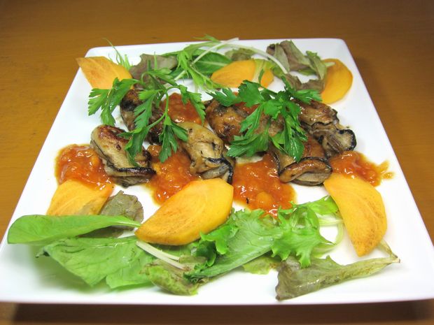 秋の彩、簡単創作オリジナル2品〜牡蠣の柿ソースと、不思議な精進グラタンもどき〜と、本の紹介v(^0^)/