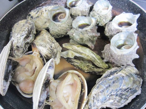 焼き貝ジュージューフキノトウの天婦羅〜v(^0^)/