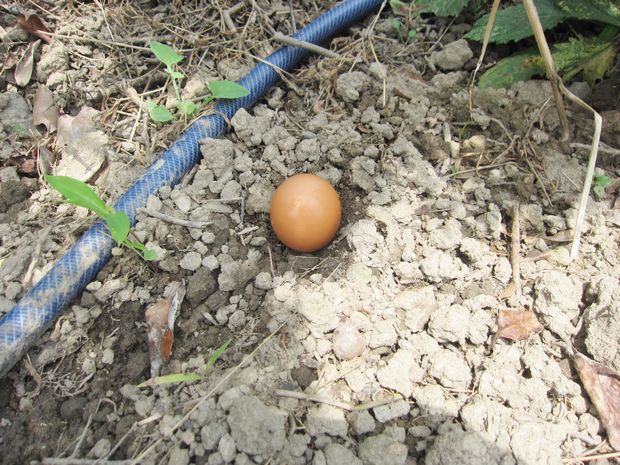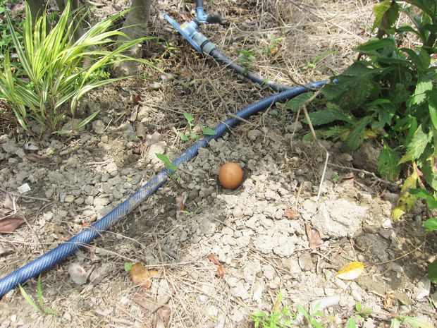 お庭のイタチくんとタマゴ、イタチはタマゴをかつぐでしょうか〜
