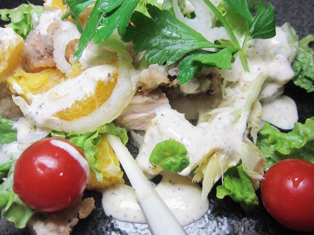 0 ドレッシングの材料をぜ〜んぶマゼマゼしたのをかけま〜す。