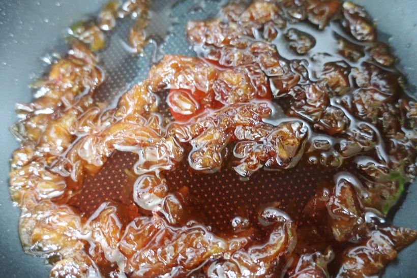 0 水分が少なくなったらレモン汁を加えてひと煮たちさせます