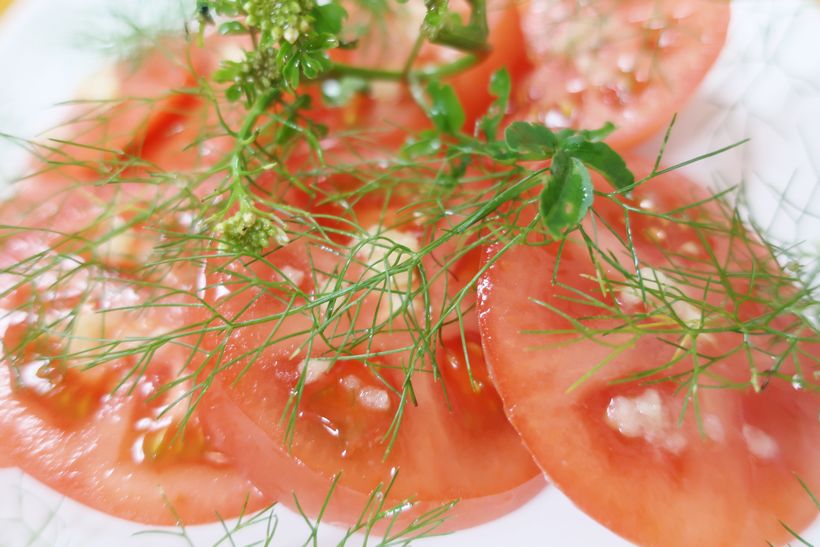 さっと塩ゆでした山ニンジンを薄めた麺つゆに浸してしばらく置いたものです。